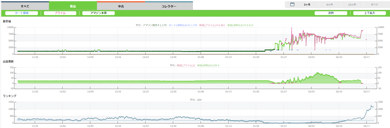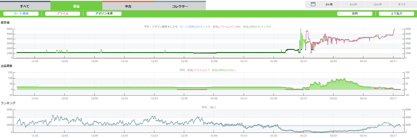 実際の相場変動の例と転売(せどり)の稼ぎ方
