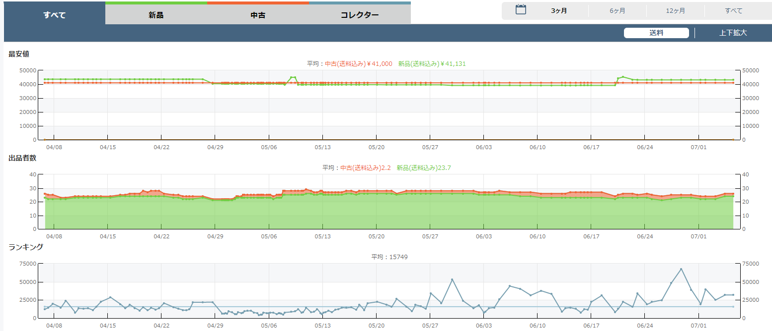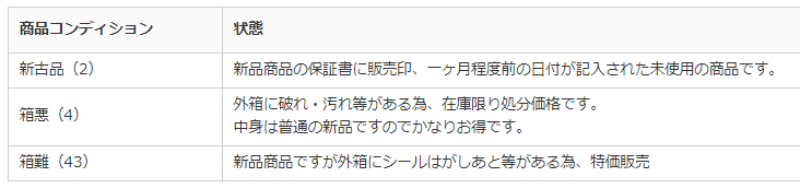 新品と中古ほぼ新品では売れる価格も違ってきますし、