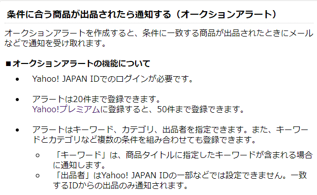 ヤフオク専用のオークションアラートがあります。